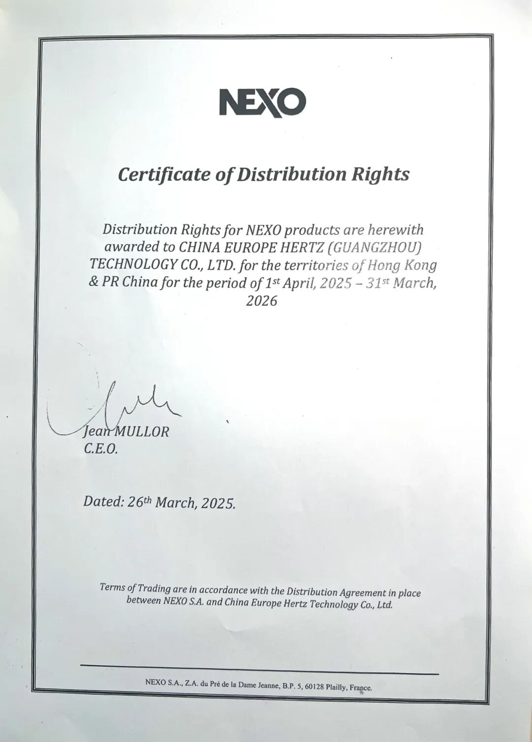 强强联手!法国NEXO正式授权